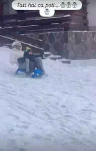 În imaginile postate pe Instagram, Ștefan Bănică și micuțul Alexandru se bucură de o zi de iarnă pe pârtie, distrându-se pe sanie. Artistul apare relaxat, zâmbitor și complet dedicat momentului, în timp ce îl încurajează pe fiul său cu multă răbdare și voie bună. Alexandru pare încântat de experiență, iar râsetele și entuziasmul lui completează perfect atmosfera caldă dintre cei doi.