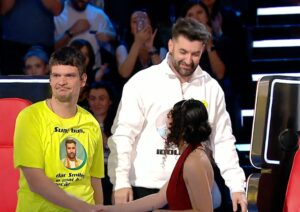 Imaginile în care strânge mâna Irinei Rimes sau schimbă câteva cuvinte cu colegii de juriu au surprins aceeași atitudine relaxată, ca și cum victoria nu l-ar fi surprins nicio secundă.