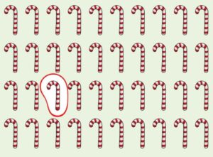 Privește cu atenție imaginea și analizează fiecare acadea în parte. Nu te grăbi. Deși toate par identice la prima vedere, una dintre ele are un detaliu subtil diferit: poate fi vorba despre direcția dungilor, o mică imperfecțiune a curburii sau o variație aproape imperceptibilă de model.